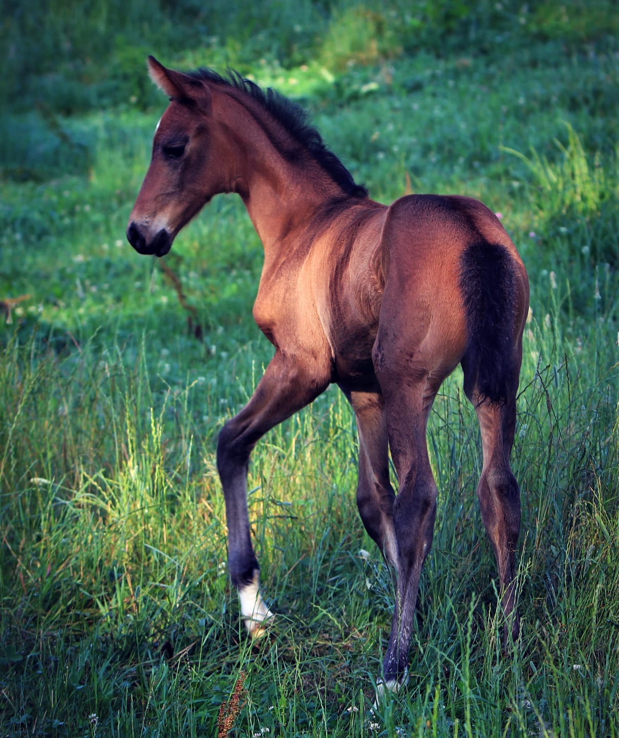 The foals can grow up with us in an ideal and beautiful environment. They have wide pastures, which are ideal for physical development. Our foals have daily contact with people, which is why they are not shy. They are very curious and love to be caressed by strangers. It is important to us that the foals learn the basics right from the start. You are used to halters and know the vet and the farrier. This combination is also reflected in the development and later work as a young horse.