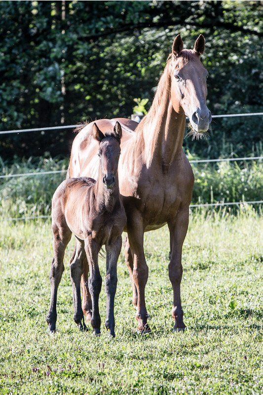 Die Fohlen können bei uns in einer idealen und wunderschönen Umgebung aufwachsen. Sie haben weite Weideflächen, welche optimal für die körperliche Entwicklung sind. Unsere Fohlen haben täglich Kontakt zu Menschen, weshalb sie nicht scheu sind. Sie sind sehr neugierig und lassen sich liebend gerne von jedem Fremden streicheln. Es ist uns wichtig, dass die Fohlen von Beginn an die Grundlagen erlernen. Sie sind Halfter gewohnt und kennen den Tierarzt sowie den Hufschmied. Diese Kombination spiegelt sich auch in der Entwicklung und in der späteren Arbeit als Jungpferd wider.